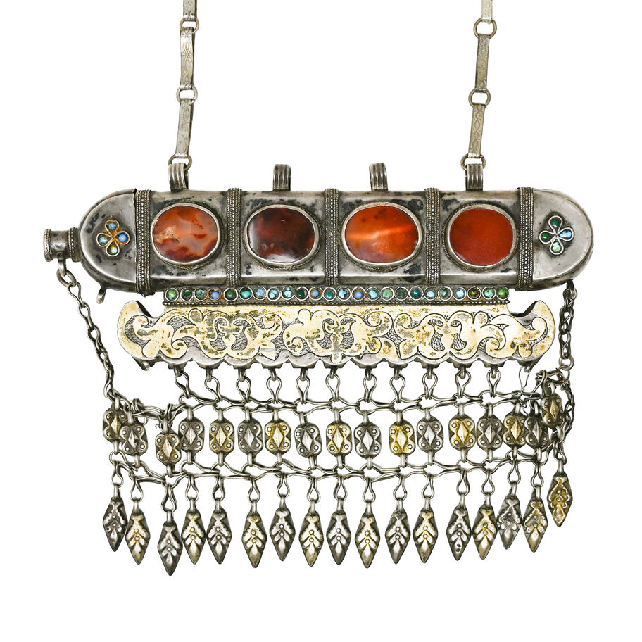 Central Asian Özbekistan (Uzbekistan) - Qaraqalpaq Silver Gilt Tumar Necklace